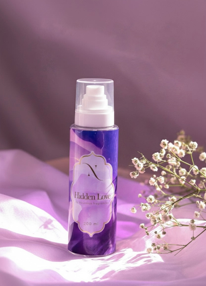 Hidden Love opens with juicy dark berries that feel sweet and tempting, then melts into a soft floral heart with a touch of elegance. The base wraps the skin in warm vanilla, musk, and woody notes, creating a captivating and long-lasting trail.