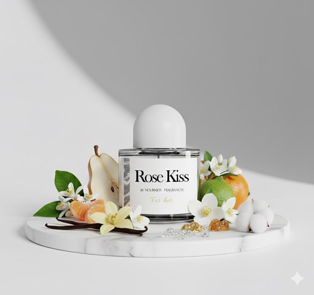 Rosé Kiss opens with juicy pear and sparkling tangerine, touched by delicate neroli. At its heart, orange blossom and jasmine bloom with radiant femininity, while the base of white musk, amber, and vanilla adds warmth and sensuality. A fragrance that feels like a tender kiss — light, graceful, and timelessly charming.